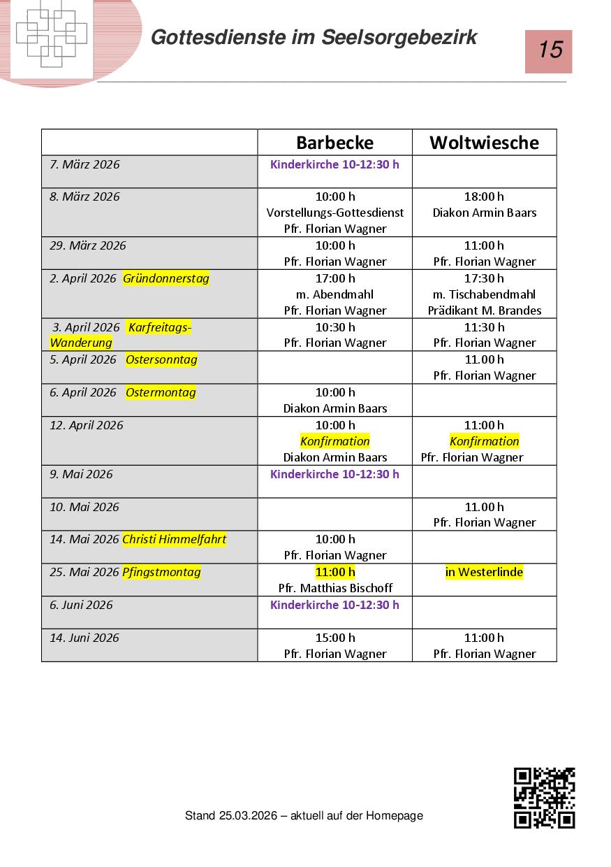 Gottesdienstplan für Barbecke und Woltwiesche